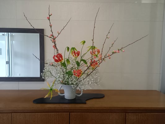 色鮮やかでエネルギーに満ちた作品で、玄関が一気に華やぎました。